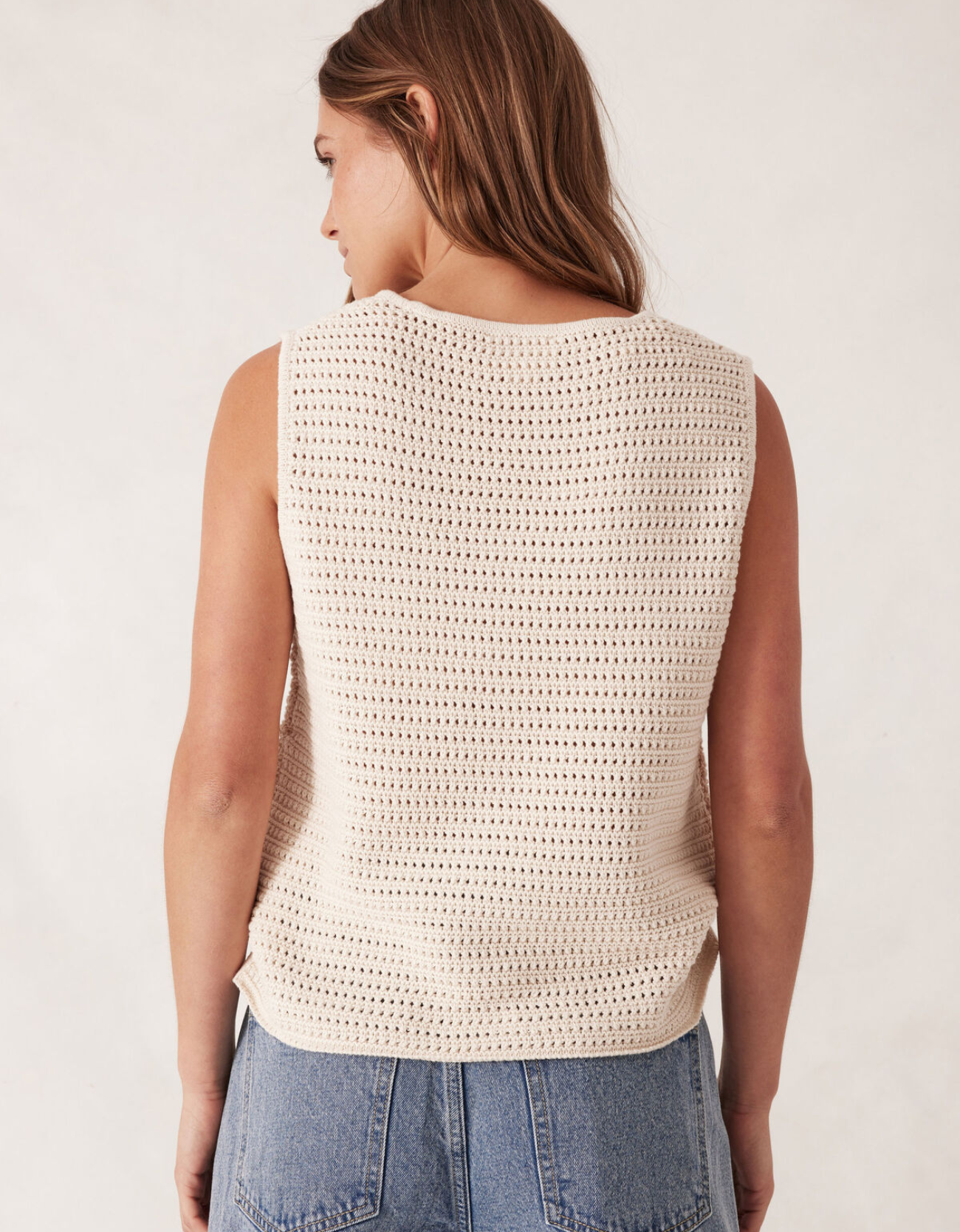 Mesh Knit Tank - Ecru. Rear View.