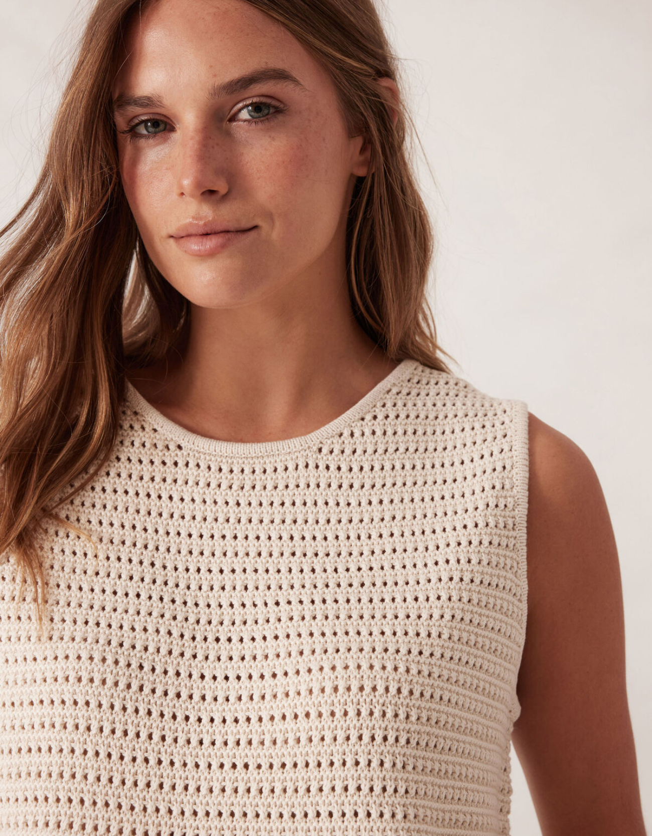 Mesh Knit Tank - Ecru close up view of knit detail