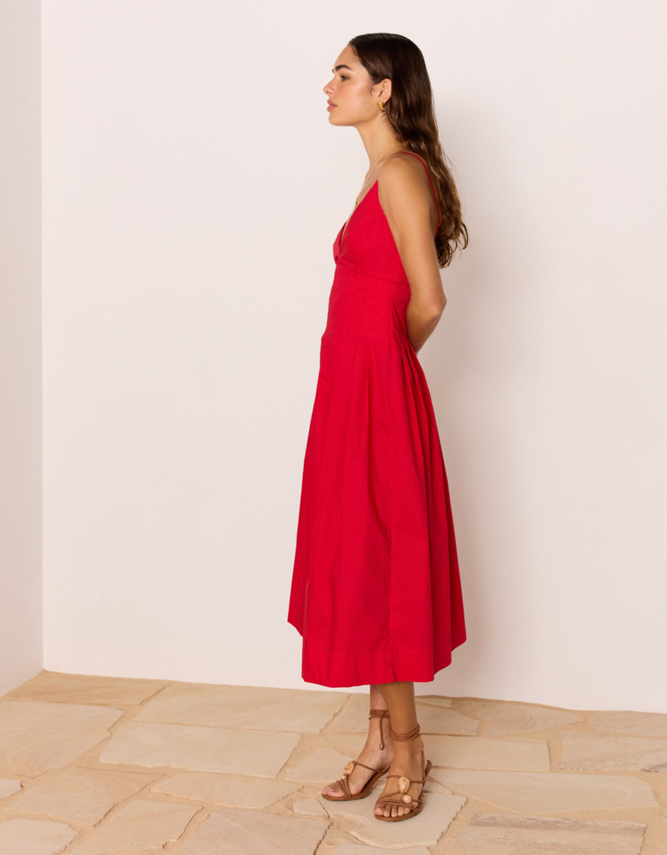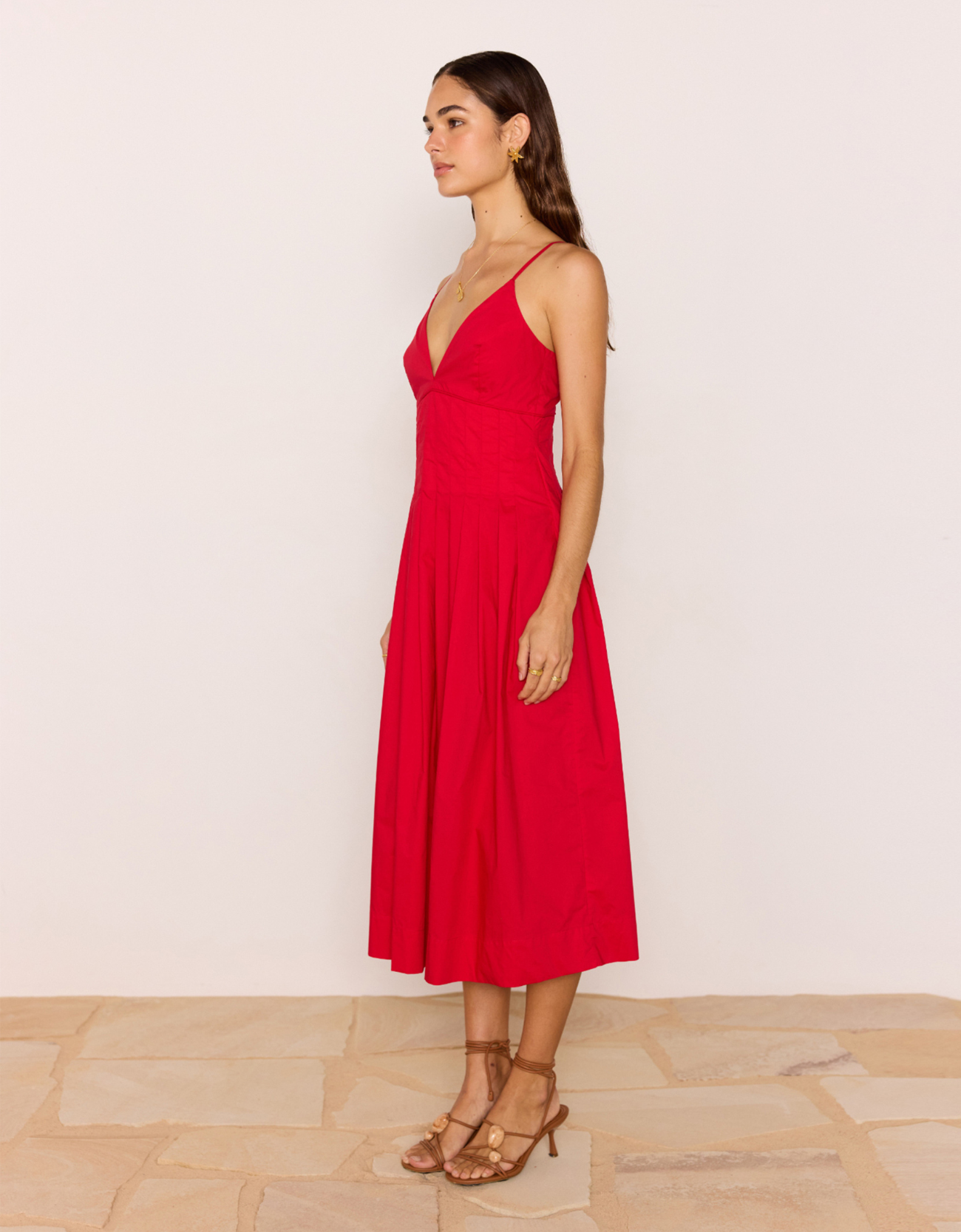 - Vibrant red midi dress