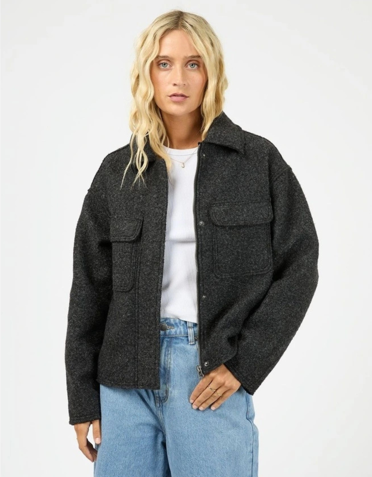 Finished with practical front pockets and understated detailing, the Lane Jacket pairs seamlessly with everything from tees to knits, making it your go-to for transitional dressing.
