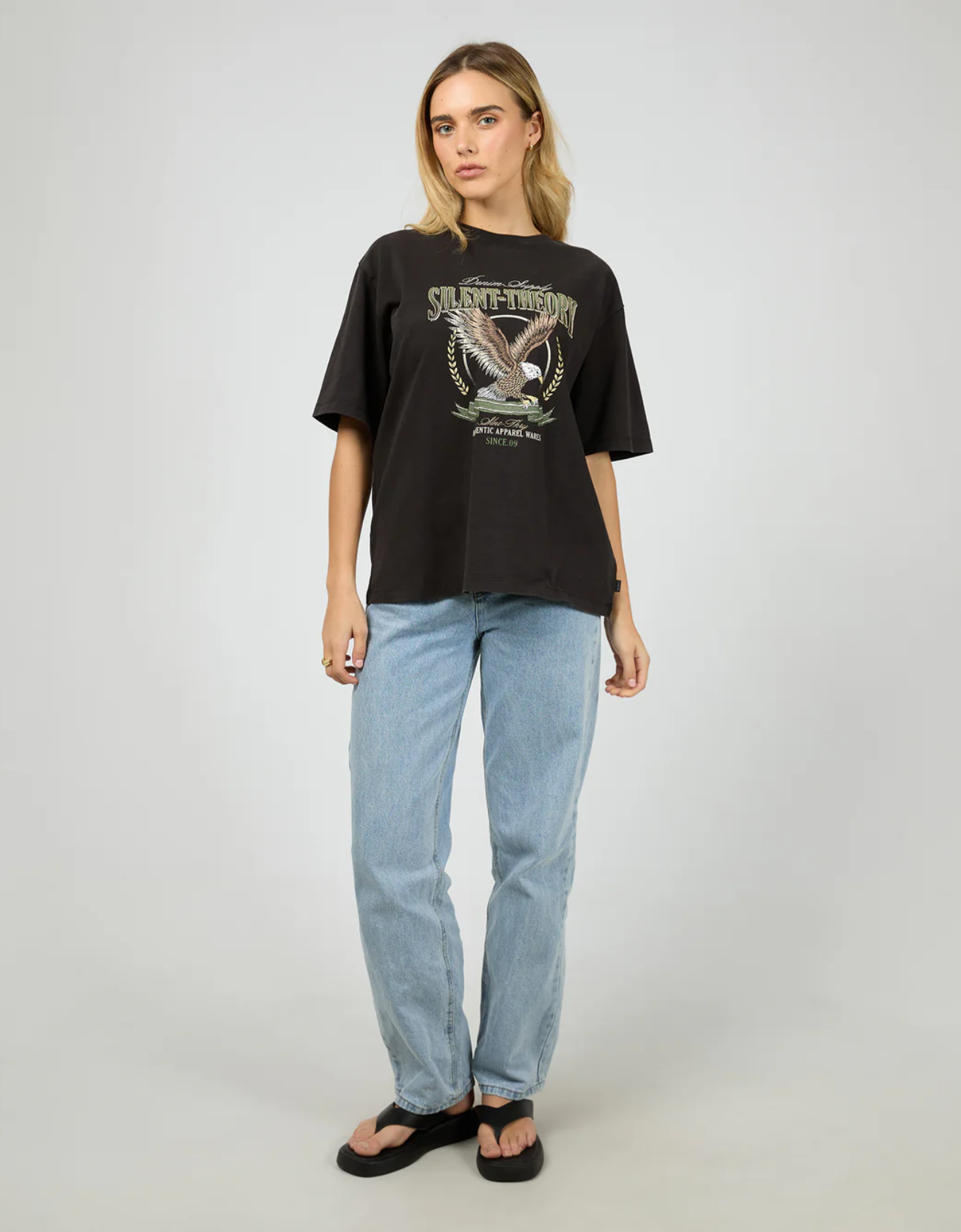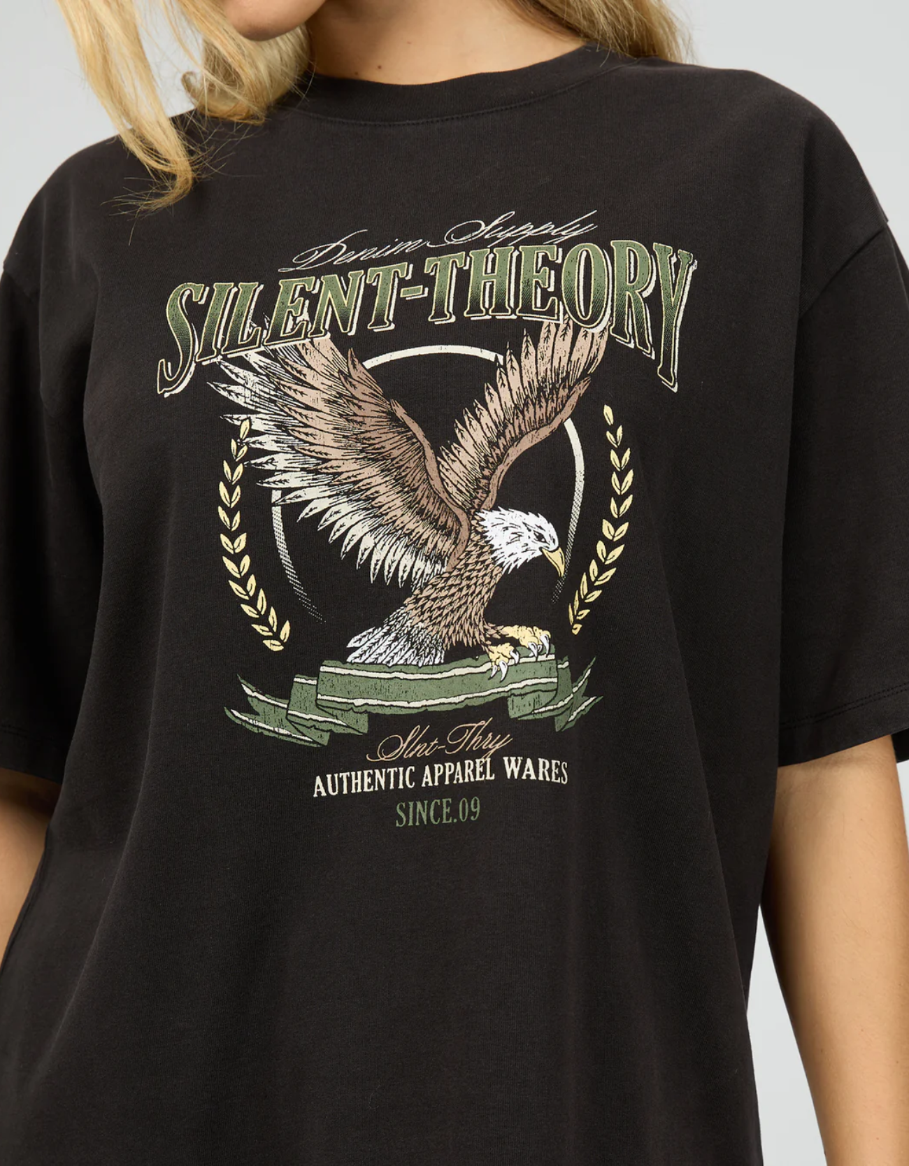 Introducing the Airborne Tee from silent Theory. Featuring an oversized relaxed fit and premium hand feel, this heavyweight jersey tee with striking Americana print is your go to for effortless, standout style.